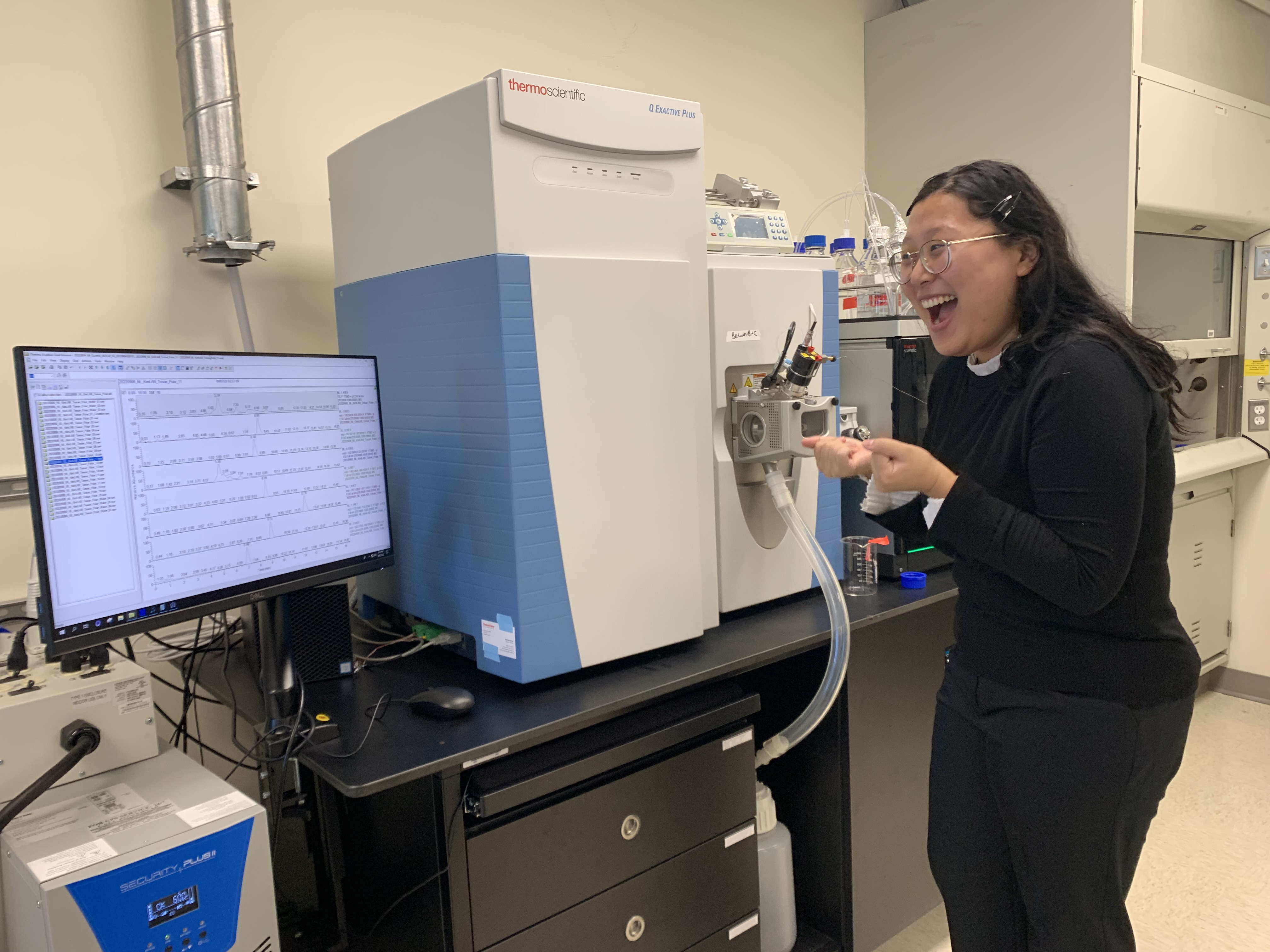 Spinelli lab trainees having fun taking care of the mass spec!