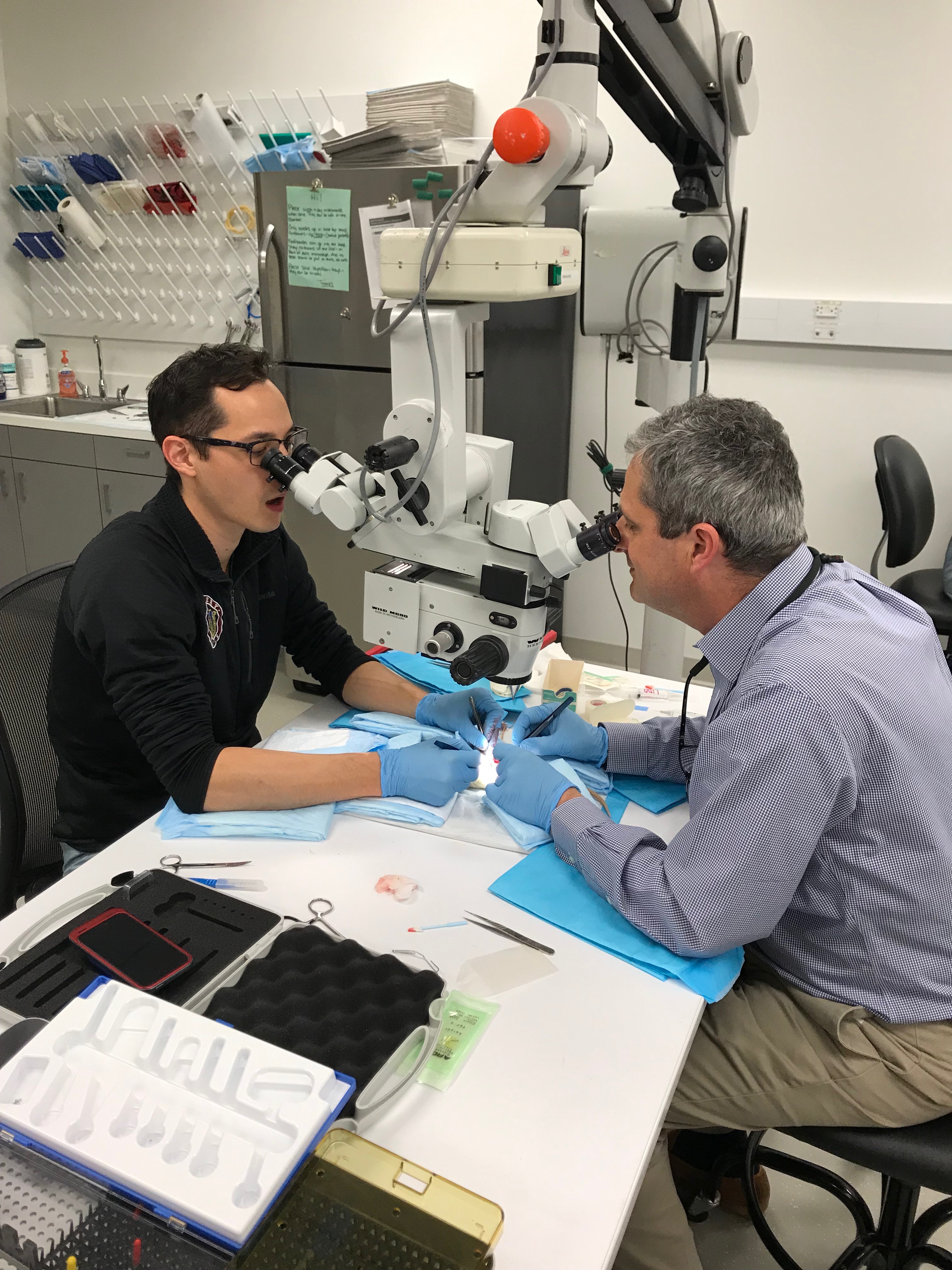 Residents develop their microsurgical skills during this week-long course in August featuring rat artery/vein models.