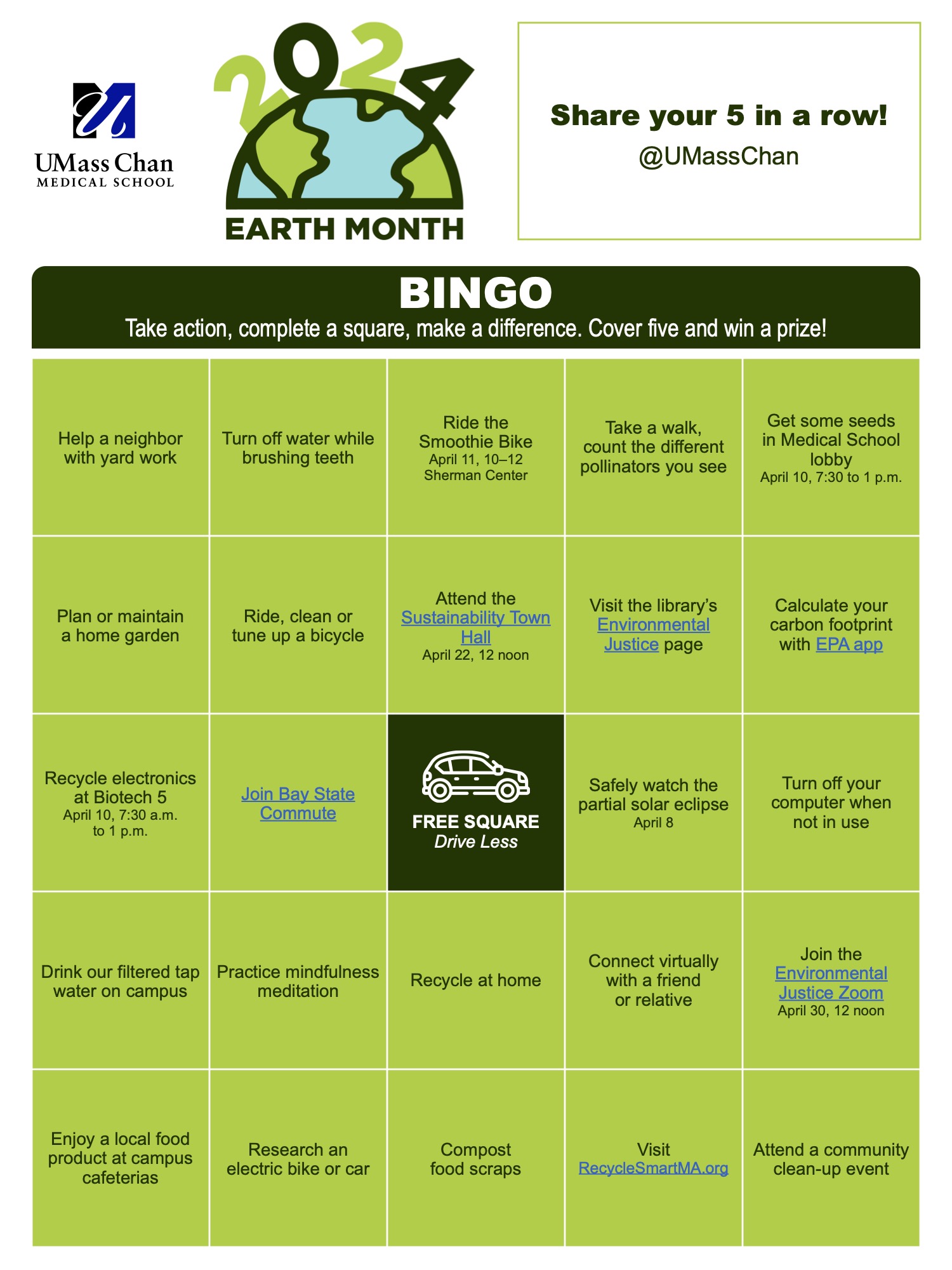 Come see the sustainability table at the Office of Well-being’s Wellness Fair at the Albert Sherman Center Cafe.