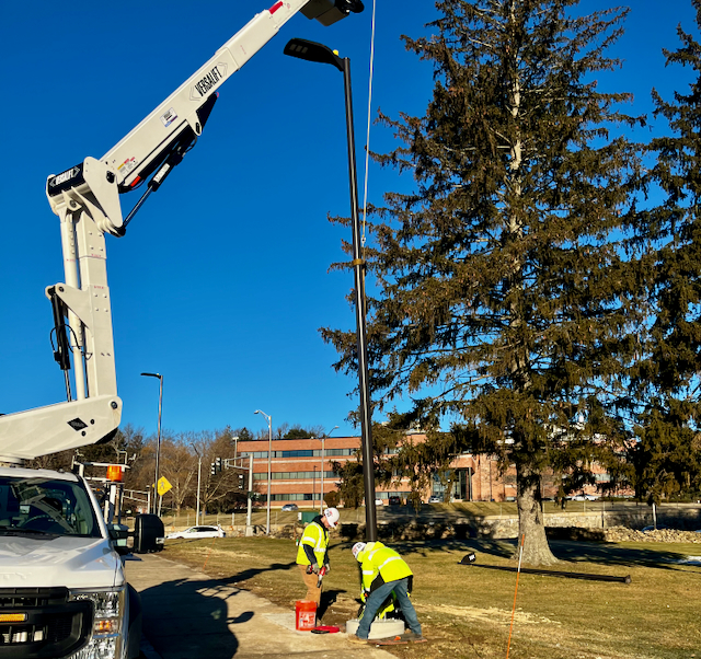 The project arose from a campus lighting study by Cannon Design that recommended steps to improve the safety of employees who utilize the Pine Tree lot at night.