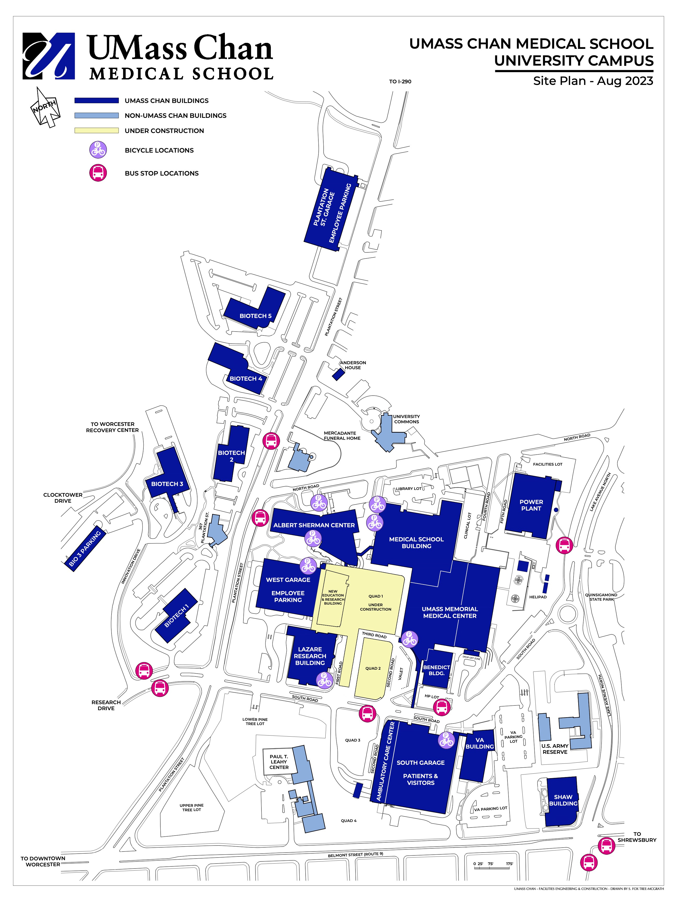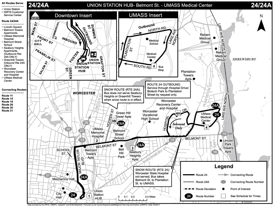 The campus is served by the Worcester Regional Transit Authority (WRTA) with connections to all major routes and the Commuter Rail. The campus is served by WRTA Bus Route 24/24A which connects to Union Station. See map.