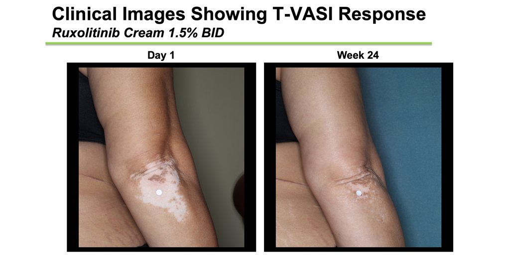 These results are really good, and we fully expect that the 1-year results will be even better since the trajectory of improvement was still increasing at the 6-month time point. Because of these promising results, there is word that Incyte is strongly considering a worldwide Phase III study for this drug, which would allow them to seek FDA-approval to market the drug for vitiligo patients. If this happens, it would be the first FDA-approved medical treatment to reverse vitiligo. Keep your eyes open for more results and announcements, this is only the beginning!