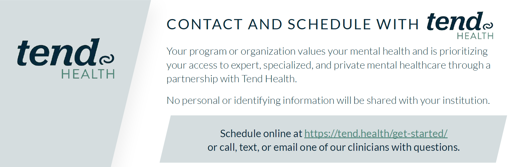 UMass Graduate Medical Education (GME) values your mental health and is prioritizing your access to expert, specialized, and private mental healthcare through a partnership with Tend Health.
